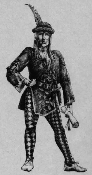 Averil is of Tilean stock, with short black hair and black eyes. She is rather stocky and below medium height, which, when combined with her rather plain, rounded face and mode of dress, gives her a very masculine appearance. She is uncertain of her real age, but appears to be no more than 16 or 17 years.[1a]