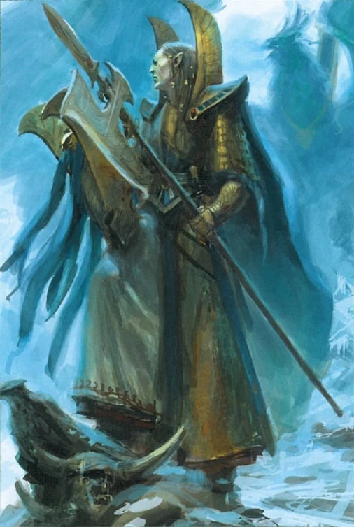 Caradryan, captain of the High Elf Phoenix Guard that defends the Shrine of Asuryan on Ulthuan.[1]