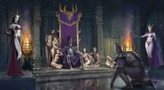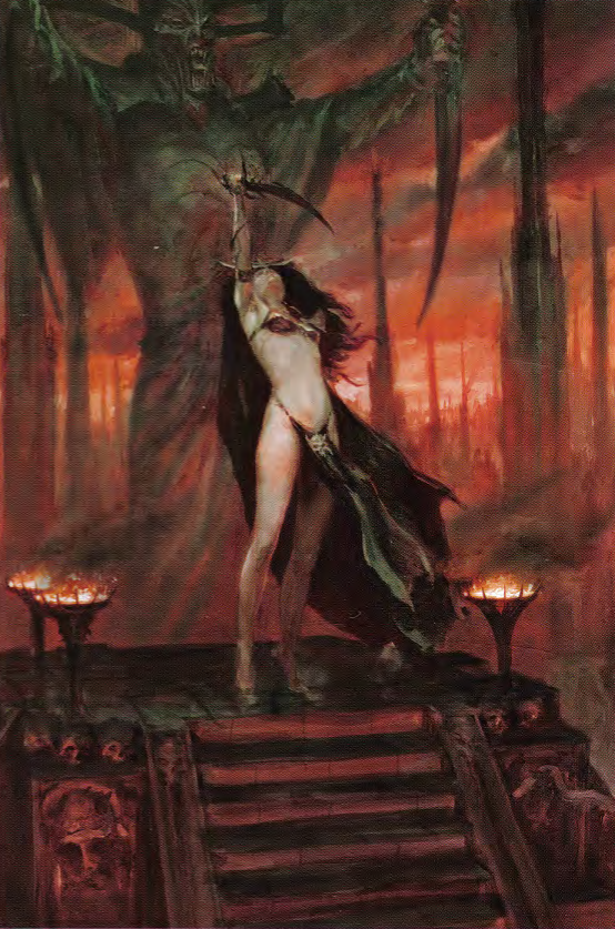 From the ancient temples of Nagarythe they had risen; hedonistic cults of luxury, pleasure, and excess that grew within the cities and spread across the kingdoms. These cults practiced obscene rituals of debasement and sacrifice, and more and more followers were drawn to dark shrines dedicated to gods that should not be worshipped.[1k]