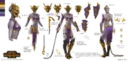 - Druchii Anointed - The Druchii Anointed are a group of renegade Dark Elves that continued to worship the Chaos God Slaanesh openly after the Elven civil war of the Sundering. Banished by the edict of the Witch King Malekith from Naggaroth after the Cult of Pleasure was outlawed in favour of the worship of Khaine, the god of war and murder, the Anointed refused to go into hiding or denounce their god after their banishment. They left instead for exile in the Chaos Wastes. Here, they battled with the mortal servants of the other Chaos Gods, eager for each new sensation. As millennia passed, the numbers of these now supremely powerful Druchii, known as the "Anointed", dwindled, so that only a handful remain. The Druchii Anointed are precision Dark Elf swordsmen. They are equally at home roaming the wilds as assassin-agents, or folded into Chaos or Dark Elf armies to bolster the troops around them and hunt down enemy commanders and heroes on the battlefield. While most Elves are resistant to mutation, the Druchii Anointed, due to their long exposure to the energies of Chaos, have been transformed. Their eyes appear to be completely black, their skin either turned translucent or ebony black and each was capable of terrifying feats of Daemonic strength. The Anointed are Sorcerers of Slaanesh who are capable of wielding both the twisted sorceries of Dark Magic and several bound spells from the Lore of Slaanesh. Druchii Anointed are generally only found in Dark Elf armies that have embraced Chaos, such as those of the Cult of Pleasure.