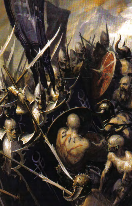Thus do the dread hosts of Naggaroth spread across the world, their fell banners dancing grimly on the wind, each warrior alert to the prospect of wicked joy that every battle brings. Ranks of spearmen advance remorselessly across the field, a shadow of death that consumes all who stand in its path.[1b]