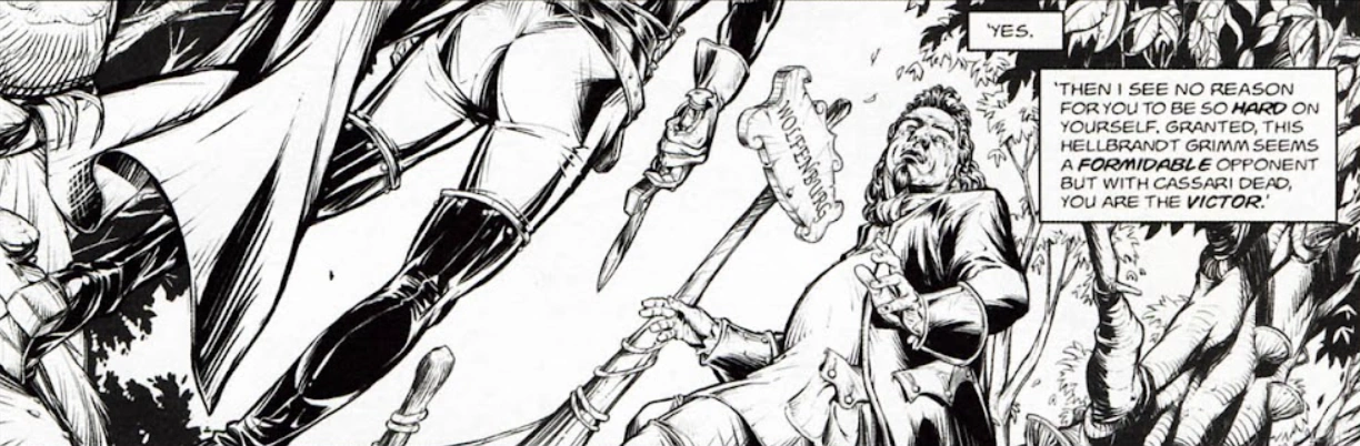 - —Cassari arguing with his bodyguard, the famous mercenary Hellbrandt Grimm[1a]