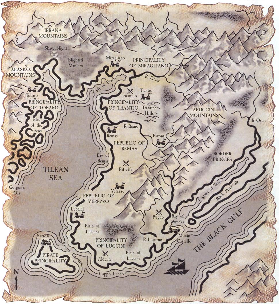 A map of Tilea with the location of the Battle of Pugno, another great conflict between the Greenskins and the Dogs of War of Tilea.[9a]