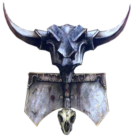 Hashut (pronounced "Hah-SHOOT"), called the "Father of Darkness," is the god of fire, greed and tyranny, the patron deity of the Chaos Dwarfs. A grim and malignant being, often represented as a great, blazing bull wreathed in smoke and shadow, Hashut is most often believed to be a minor Chaos God; some scholars of the arcane would, however, label him as an Archdaemon rather than a Dark God, and others insist he is some other foul entity let loose upon the mortal world during the coming of Chaos in the Great Catastrophe. Whatever the case may be, Hashut is closely associated with tyranny, greed, fire, and hatred, and is a being whose gift of great power comes at a terrible price.[2a]