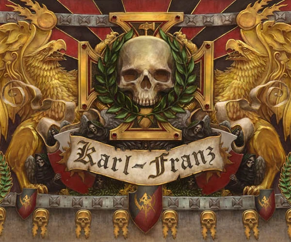 Karl Franz, also spelled Karl-Franz,[37a] formally Emperor Karl Franz I Holswig-Schliestein, bearer of the titles "Protector of the Empire," "Defier of the Dark," "Sigmar's Heir," "Emperor of the South," "Emperor Himself," "Son of Emperors," "Elector Count of Reikland," "Grand Prince of Reikland,"[40a] "Prince of Altdorf,"[40a] and "Count of the West March,"[40a] is the current Emperor of Man,[1a] the Elector Count of Reikland, the Prince of Altdorf and the greatest statesman and general the Empire of Man and perhaps the entire Old World has seen in many centuries.[1b]