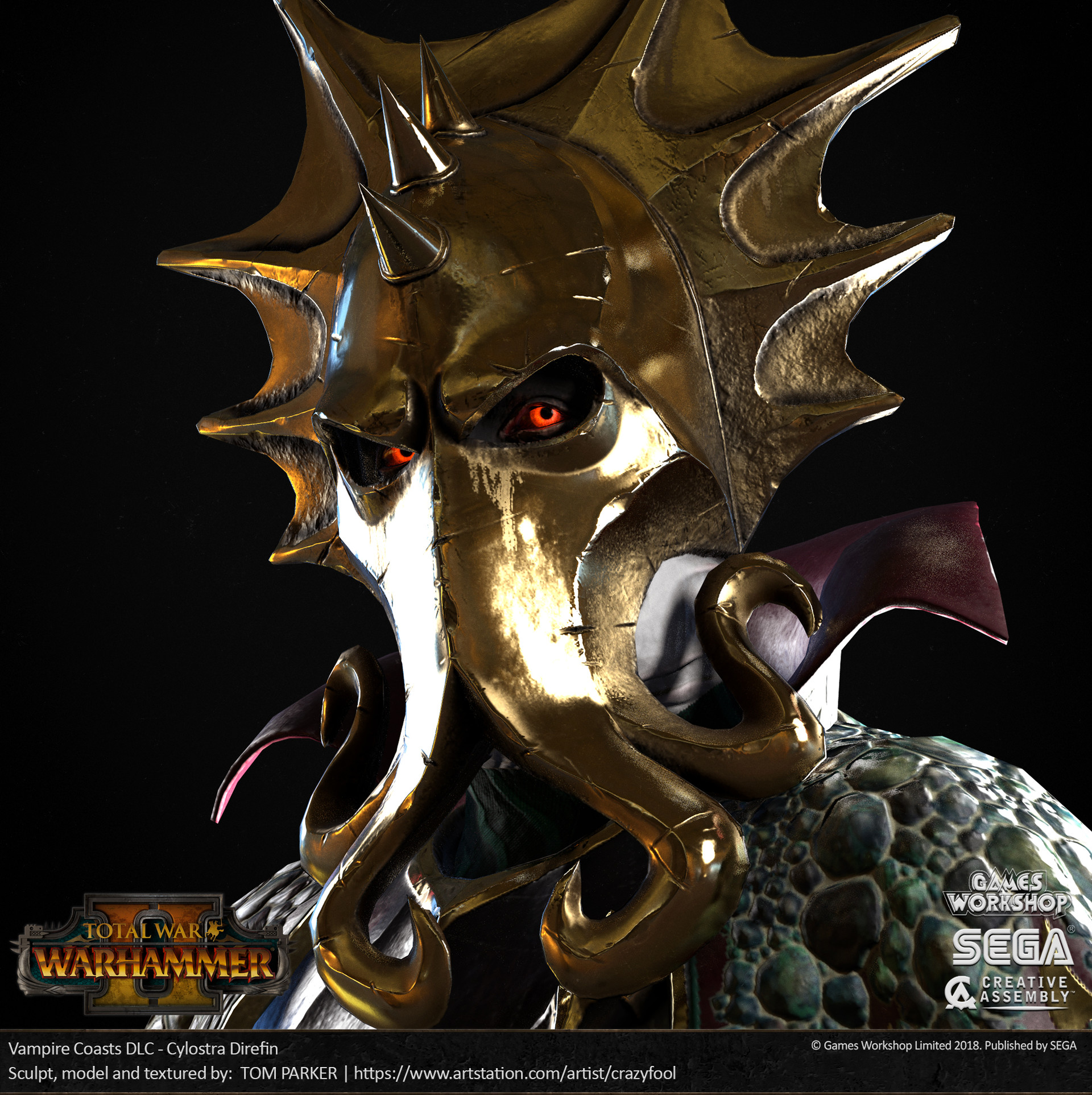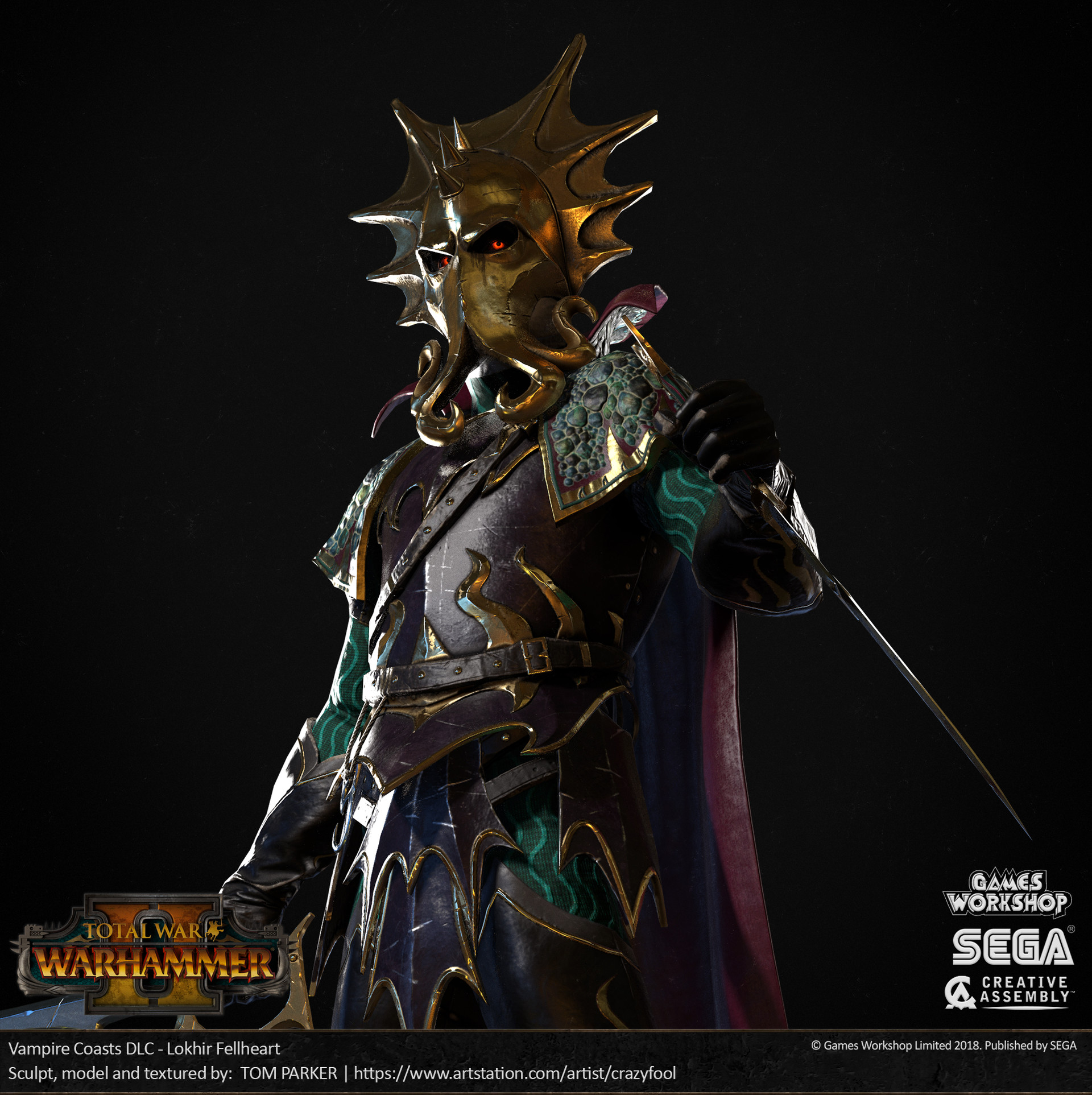 Lokhir Fellheart wearing the Helm of the Kraken, as rendered for Total War: Warhammer II.