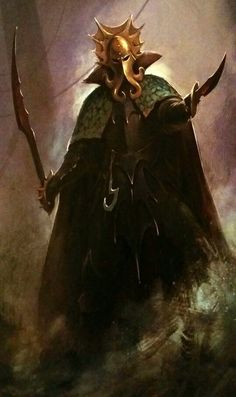 Lokhir Fellheart, the Dark Elf Kraken Lord of Karond Kar and commander of the Black Ark Tower of the Blessed Dread.