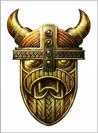 Morgrim's primary symbol is a stylized stone thrower, and a secondary symbol is the rope and pulley. Initiates and clerics favour dark clothing (black or dark grey) with a small version of Morgrim's symbol embroidered on the left breast.[1a]
