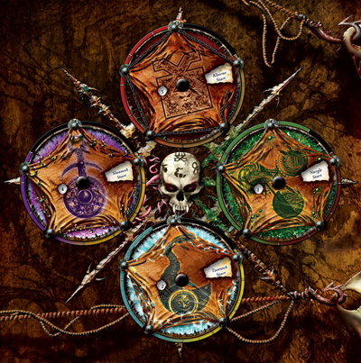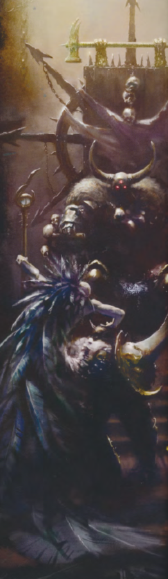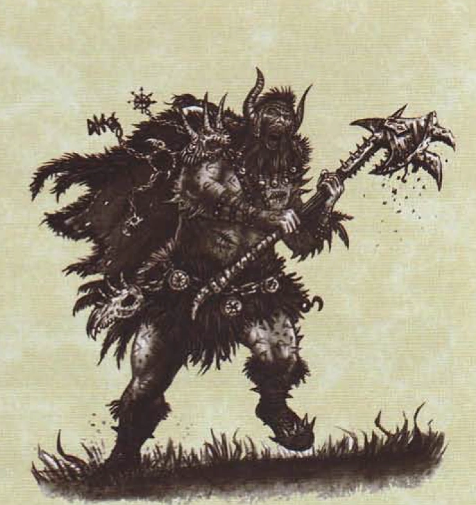 - Shaman-Sorcerer - The Shaman-Sorcerer is, more often than not, a practiced murderer. They pursue dark pacts and bargains with numerous petty Chaos godlings and Daemons as the source of their arcane powers, and use their prophetic influence to guide the tribes towards war. Shaman-Sorcerers are rightly feared due to their prophetic seer-craft and unholy mastery of the stormy Winds of Magic of the frozen north, conducting Daemonic rituals as a way of gaining favour from the Dark Gods. That is not to say they are incapable of face-to-face combat -- they take to the battlefield with both staff and axe, wielding magic as well as cutting down any unfortunate foe who happens to get too close.