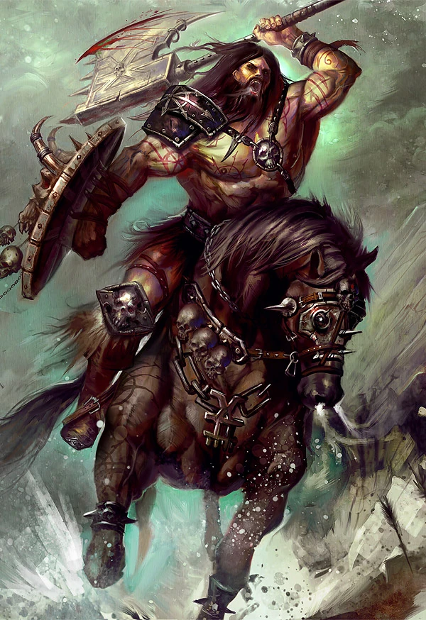 Pleased by the ferocity of their servants, the Dark Gods bestowed the Norsii with the blessings of Chaos, increasing their indomitable might and making them as wolves amongst sheep. Forever on the fringes of the southern lands, the Norsii became a fearsome race of skilled fighters, and many vicegerents of the Dark Gods had served as advisers to the northern tribes, guiding and shaping their destinies, preparing the Norsii for their role as the harbingers of the End Times.