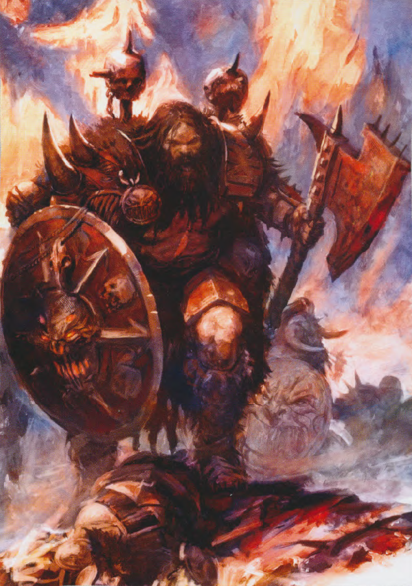 Fur-clad warriors and berserkers of hairy brawn, the wrathful barbarians of Norsca sail the seas in fearsome longships and unleash their devastating fury upon the civilised realms of the south. Warlike and cruel, the Norscans are the very epitome of the Warriors of Chaos; fanatically devoted champions of the Dark Gods and the baneful scourge of their foes.[1a][2a][3a] The brutality of Norscan raids has been felt as far abroad as Malekith the Witch King's baleful Dark Elven domain of Naggaroth, as well as the mysterious Far Eastern empire of mighty Grand Cathay,[35] for the Men of Norsca are reckoned to be perhaps the most adept sailors and navigators in all the Known World;[1a] unequaled by any in their courage and reckless thirst for conquest.[1a][2a][3a]