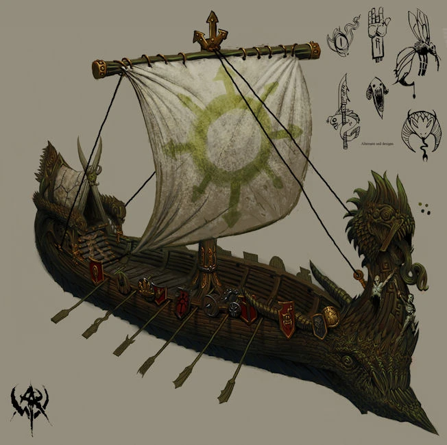 Concept art of a Norse Longship as created for Warhammer Online: Age of Reckoning.