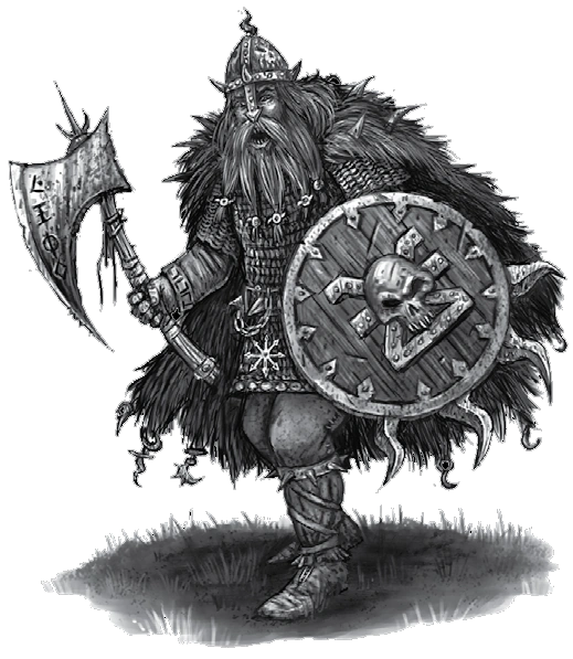 Norscans are, without exception, great warriors, blessed with incredible strength at arms and fearsome demeanours.[7b][51b] It is the dream of nearly every member of this fierce people to ascend to the ranks of the greatest warriors -- to become mighty Champions of Chaos and bear the dread marks of their ruinous gods' favour.[7c][51b]