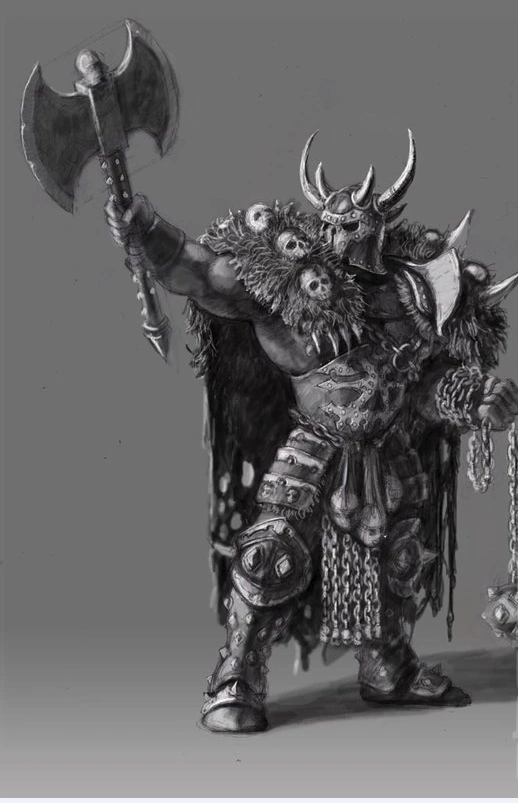 A Norscan Champion of Khorne, the most worshipped of the Chaos Gods among the Northmen.