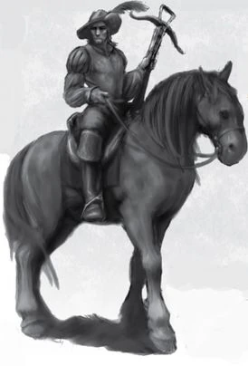 Outriders are experienced outdoorsmen who reconnoitre for armies, caravans, and other travelling parties. They are the eyes and ears, constantly on the lookout for ambushes and other hazards. Because they operate in advance of the main party, they must be self-sufficient and level-headed. Outriders must trust their instincts and make their own decisions, because they have no one else to turn to when they are alone in the wild. Most Outriders operate in home area and use their intimate knowledge of the locale to their advantage. A few specialize in trailblazing, riding ahead into unknown and hostile territory. These Outriders earn more money for their services, but their life expectancy is short.[1a]