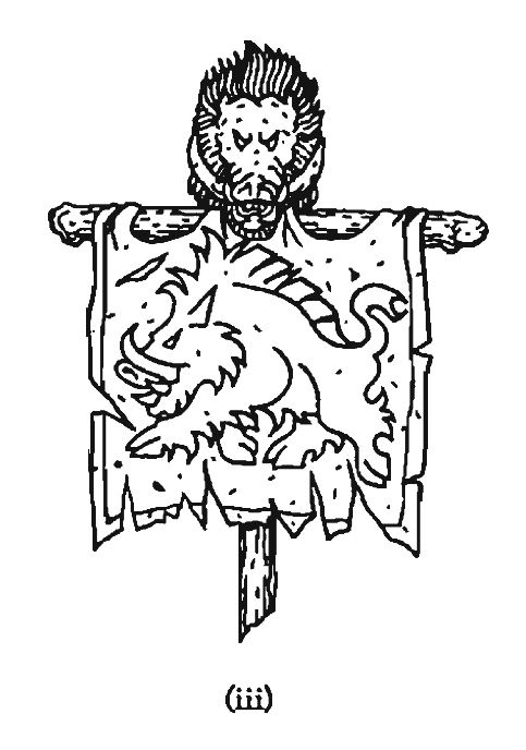 He passed foresters as they cleared the track of fallen branches and laid traps for game. They carried hunting bows and axes and were accompanied by slavering hounds. But the beasts picked up no scent and Sigmar blessed them silently as He passed. When He emerged from the forest onto the eastward plain He was no longer alone. "lb His left trotted a wild, grey-headed wolf, and to His right there was a giant boar with black tusks. As He set off up the hillside they followed at His heels faithfully: the wolf with his wildness and courage, the boar with his wits and tenacity. When Sigmar reached the top of the hill, He turned. Before Him and sweeping out to the north and west was the forest.[4d]