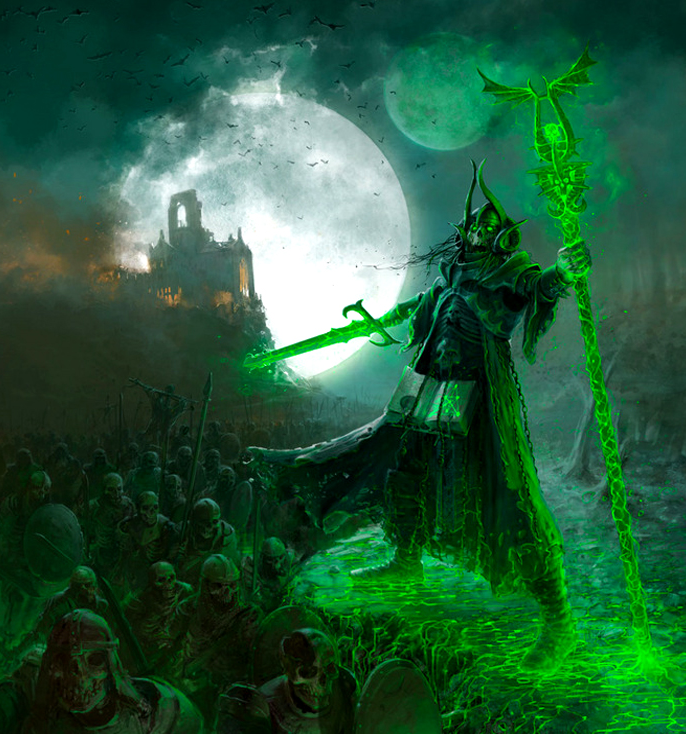 For fifty years did Sigmar reign over the Empire: a golden age that was just, fair and prosperous. Yet despite that, many challenges to the Empire's stability were faced and overcome by Sigmar's daring and leadership: the invasions of Norsii barbarians, and even the march of the Lord of the Undead, Nagash himself, whom Sigmar defeated in single-combat at the gates of Reikdorf. Upon the last year of his rule, and the anniversary of his coronation by the Ar-Ulric, Sigmar rose up from his throne and left the Empire, heading eastwards towards the Worlds Edge Mountains. He was accompanied by a great wolf on one flank and a massive boar on the other, his visage was a mask of grim determination.[7a]