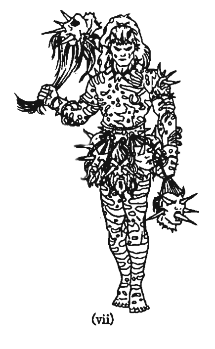 The Asoborns often fought naked or half-naked and adorn their entire body in crude warpaint and had flaring hair, giving them a feral appearance