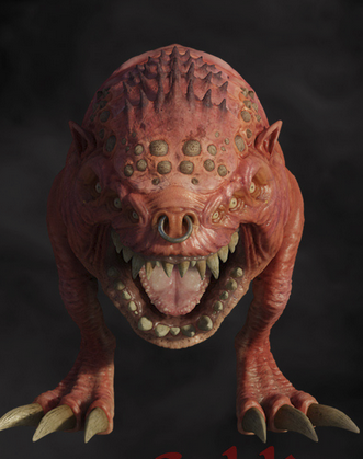 Squigs, short for "Squiggly Beasts,"[4f] are considered by many to be the simplest form of Greenskin life and like the Greenskins themselves, they share a similar fungal biology and partial anatomy.[4a][8a]