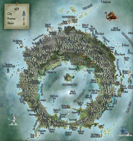 The Ten Kingdoms of Ulthuan are generally separated into the "Inner Kingdoms," which have part or all of their coast on the island-continent's Inner Sea, and the "Outer Kingdoms," which face the Great Ocean. The Inner Kingdoms are often characterised as being introverted and dreamy, while the Outer Kingdoms are more rugged and accustomed to warfare.[1a]